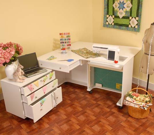 A large pull out drawer to hold essential notions with fabric support cover round out the features of this hopping cabinet.